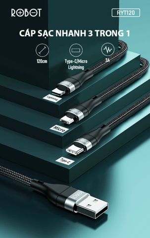 | Loại cáp | 3 in 1 Lightning/Type-C/Micro USB |