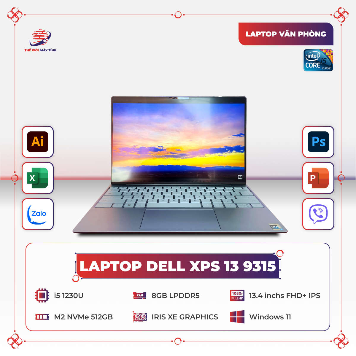 Sản phẩm Dell XPS 13 9315 mới được hãng trang bị dòng chip U thế hệ thứ 12 mới nhất từ nhà sản xuất chip Intel.